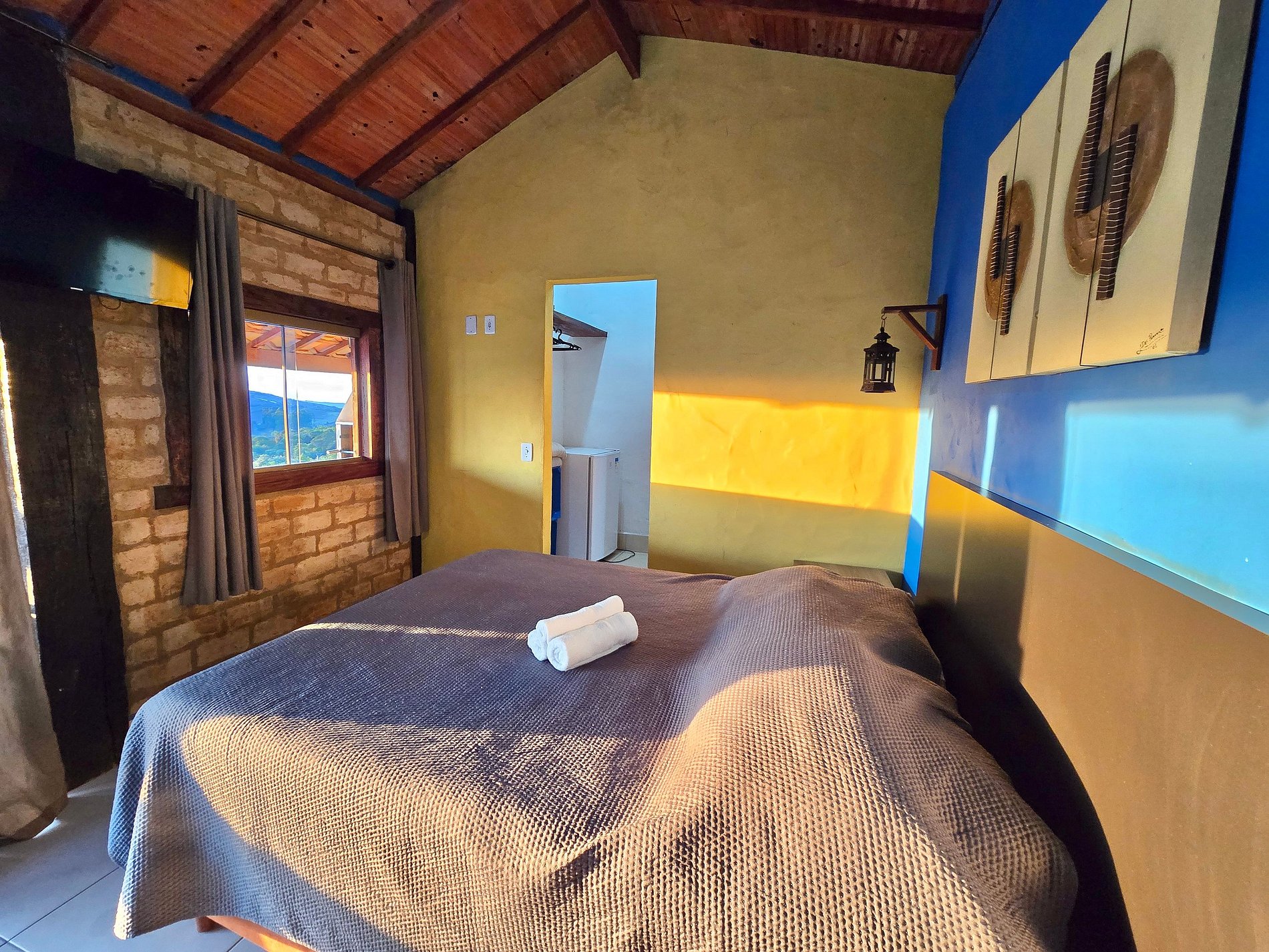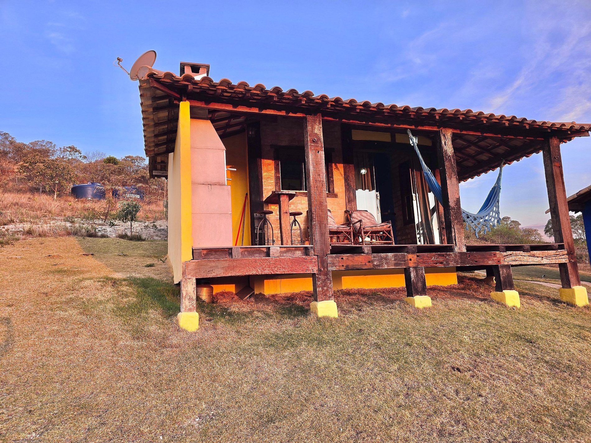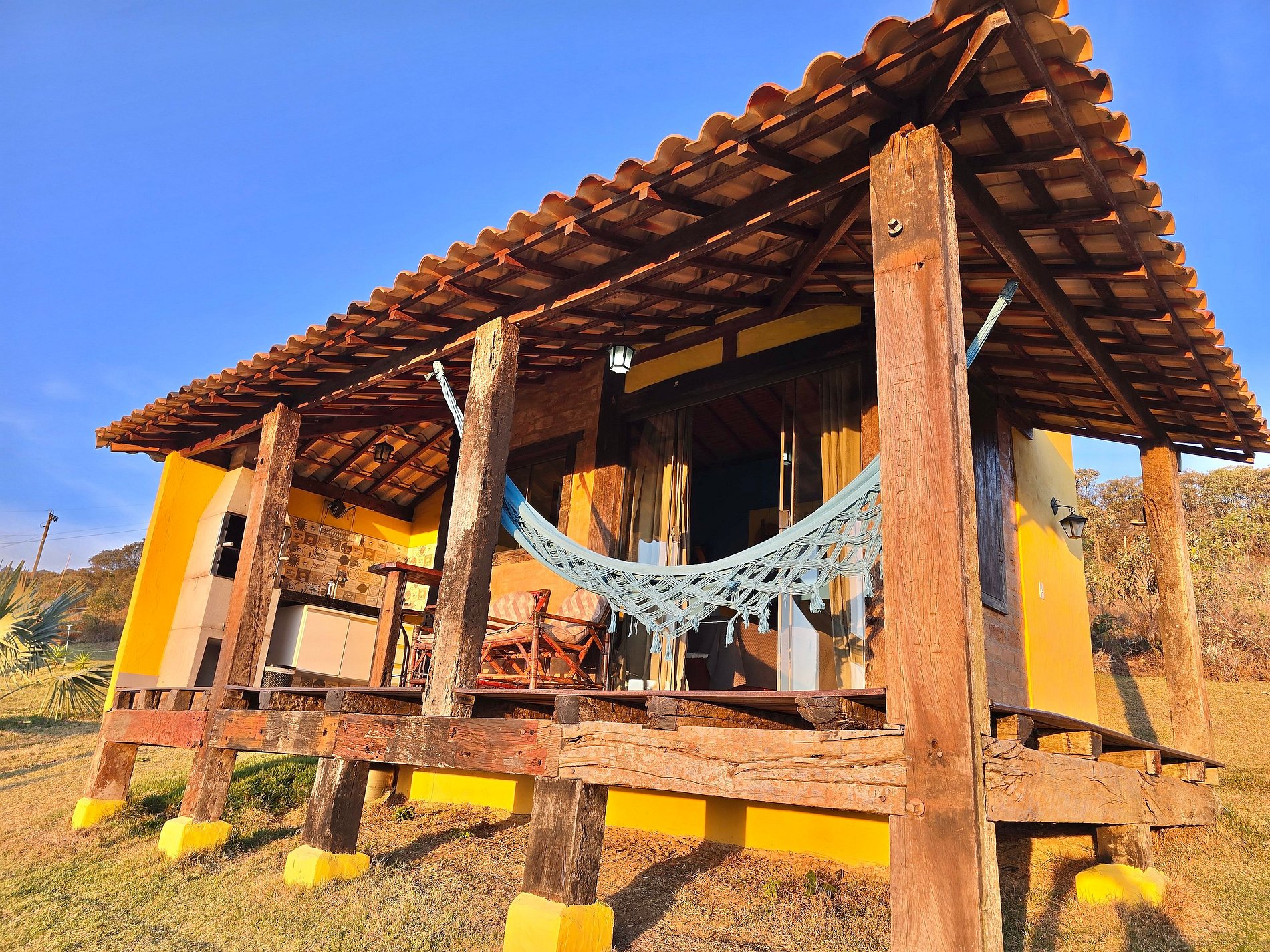 🟡 Chalé Amarelo - banheiro privativo, tv com canais abertos, varanda com rede e churrasqueira, cozinha equipada, wi-fi e estacionamento gratuito