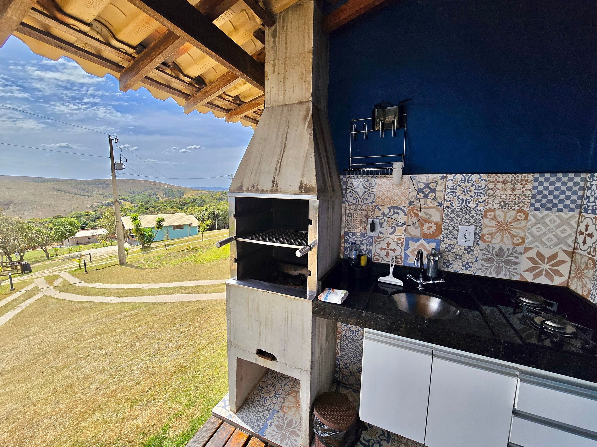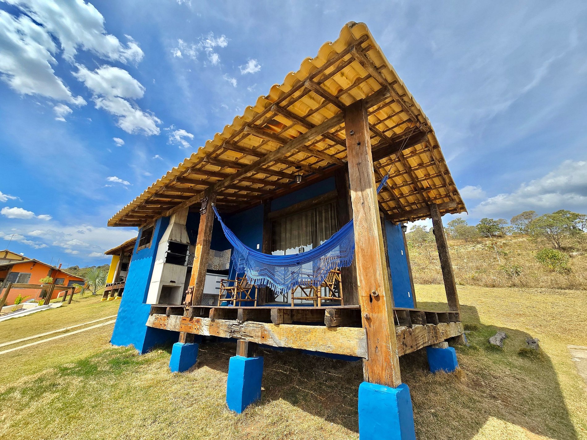 🔵 Chalé Azul - banheiro privativo, tv com canais abertos, varanda com rede e churrasqueira, cozinha equipada, wi-fi e estacionamento gratuito