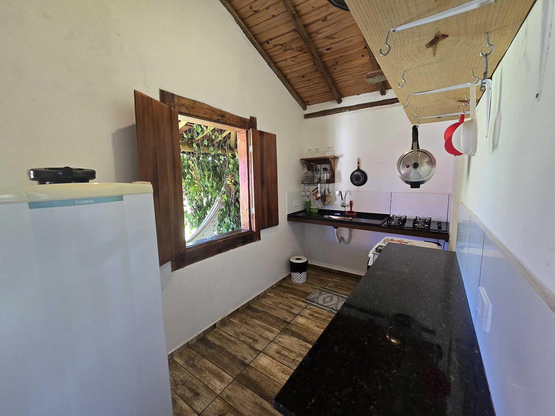 🟢 Chalé 403 (casal) - terraço com rede, TV de tela plana, área para refeições, cozinha bem equipada, banheiro privativo e vaga de estacionamento