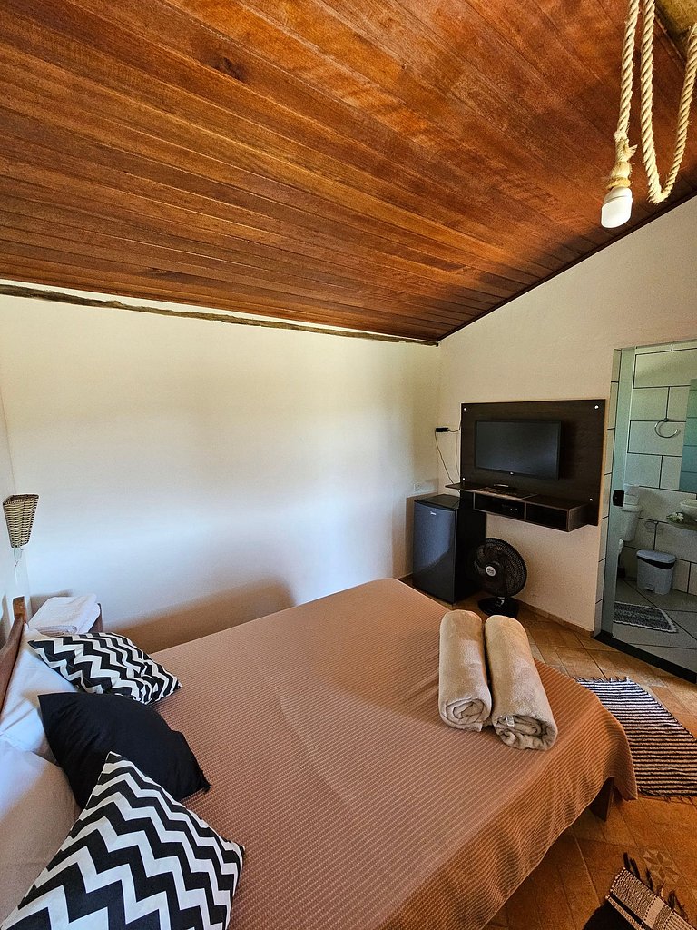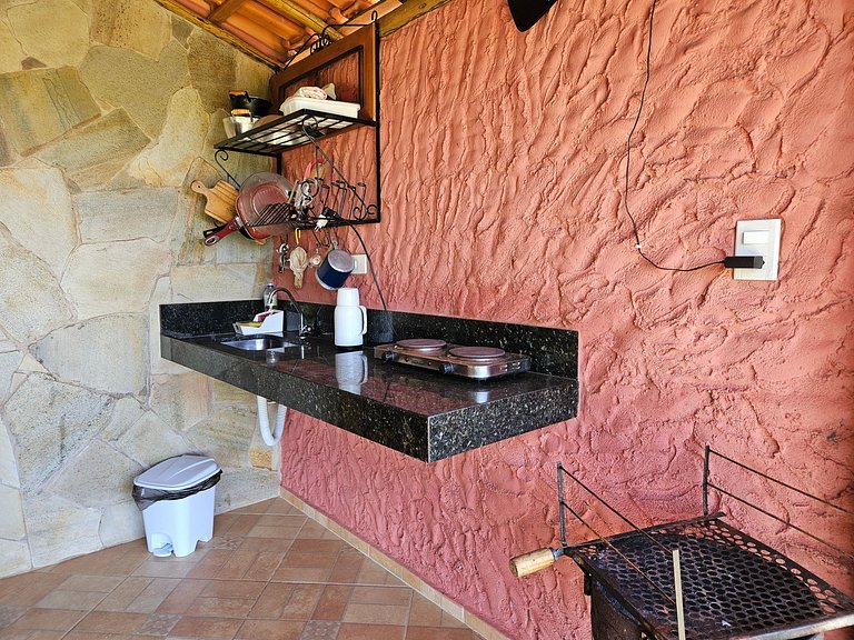 🔴 Chalé 405 (casal) - terraço com rede, TV de tela plana, área para refeições, fogão de duas bocas externo, frigobar, banheiro privativo e vaga de estacionamento