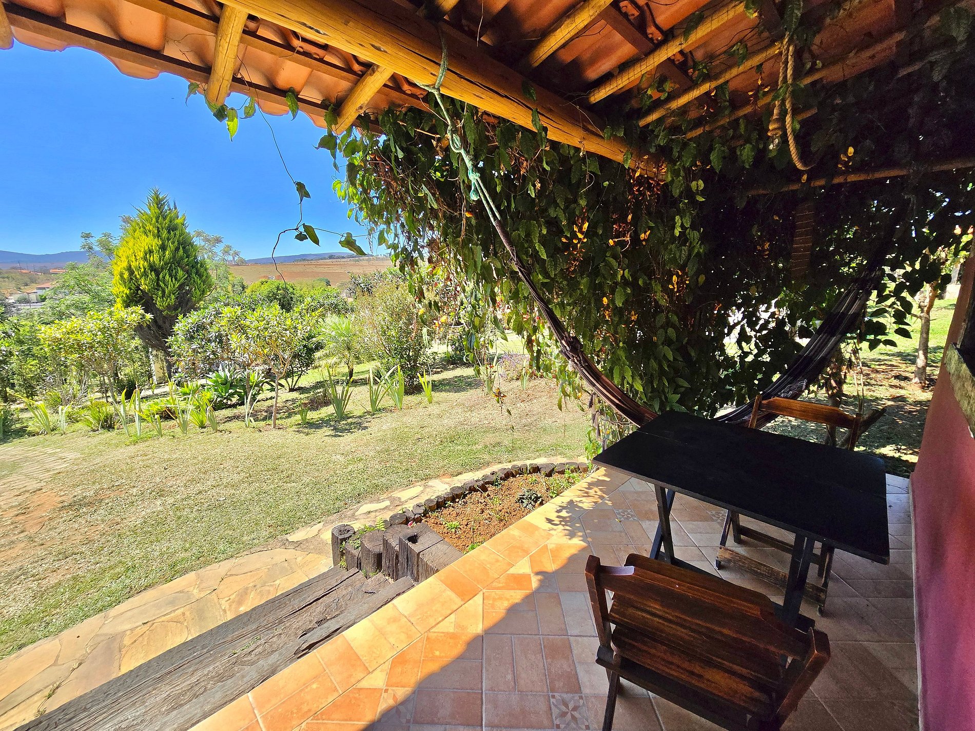 Apenas a 250m do centro da cidade, nossa propriedade oferece uma estadia tranquila cercada por exuberante área verde e lindas vistas das montanhas.