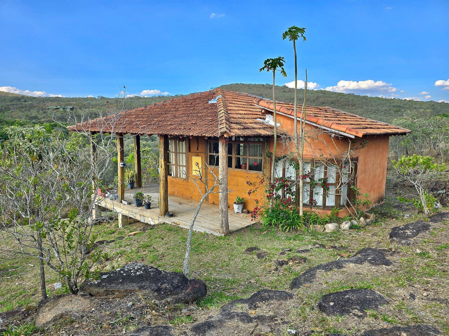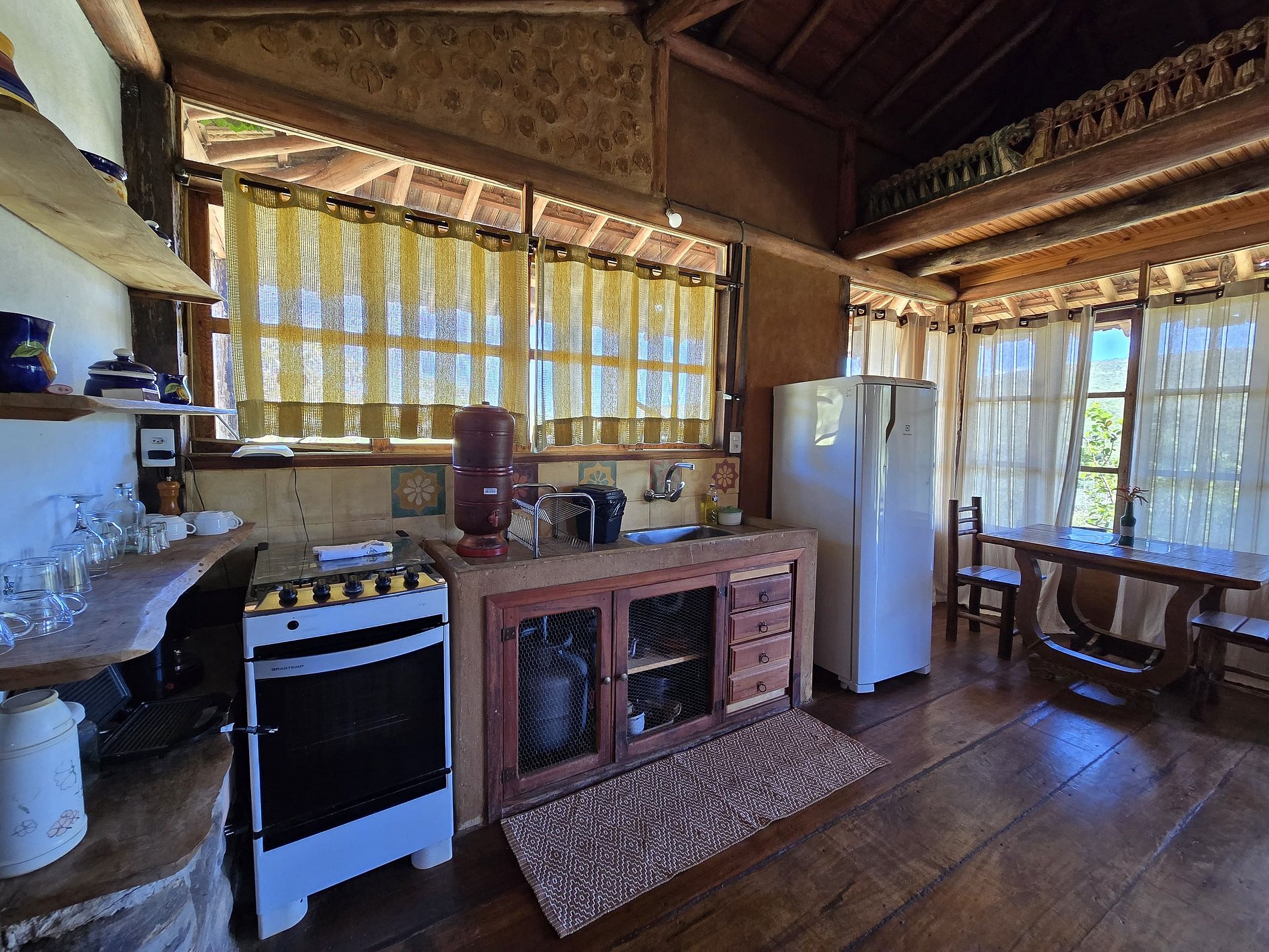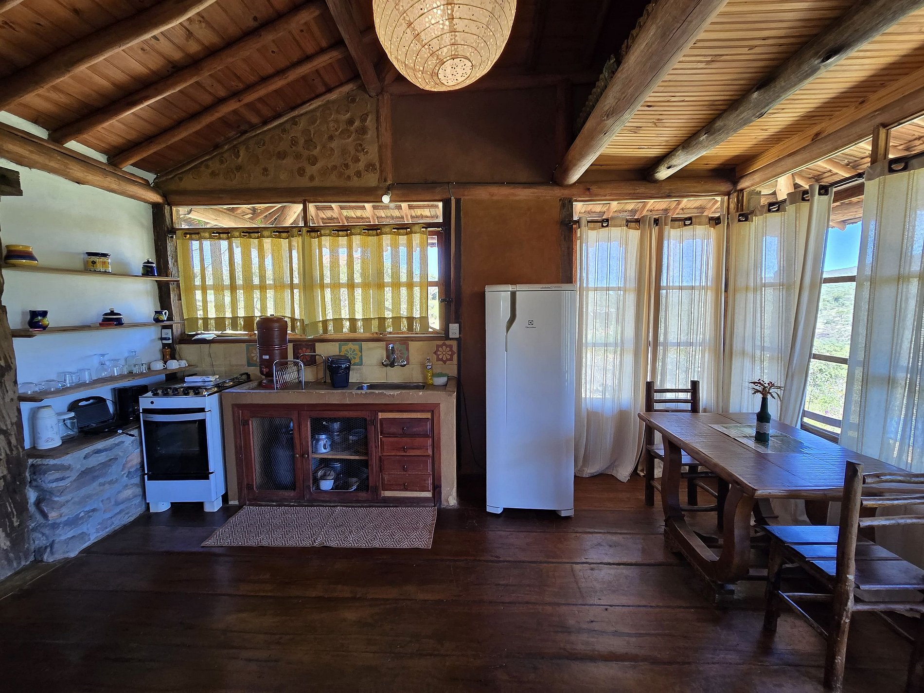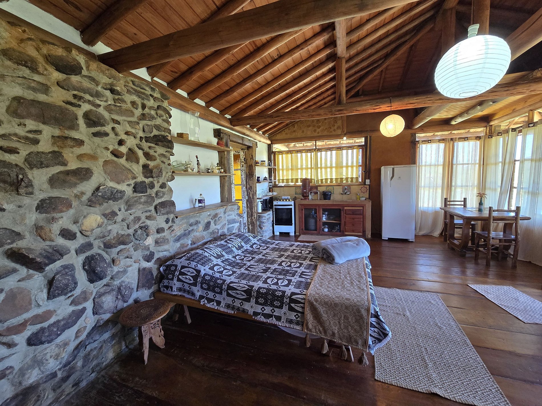 Nossa propriedade oferece quatro chalés independentes. Três chalés são ideais para casais, enquanto o quarto é espaçoso o suficiente para acomodar até sete pessoas. Cada chalé é equipado com cozinha completa e WI-FI.
