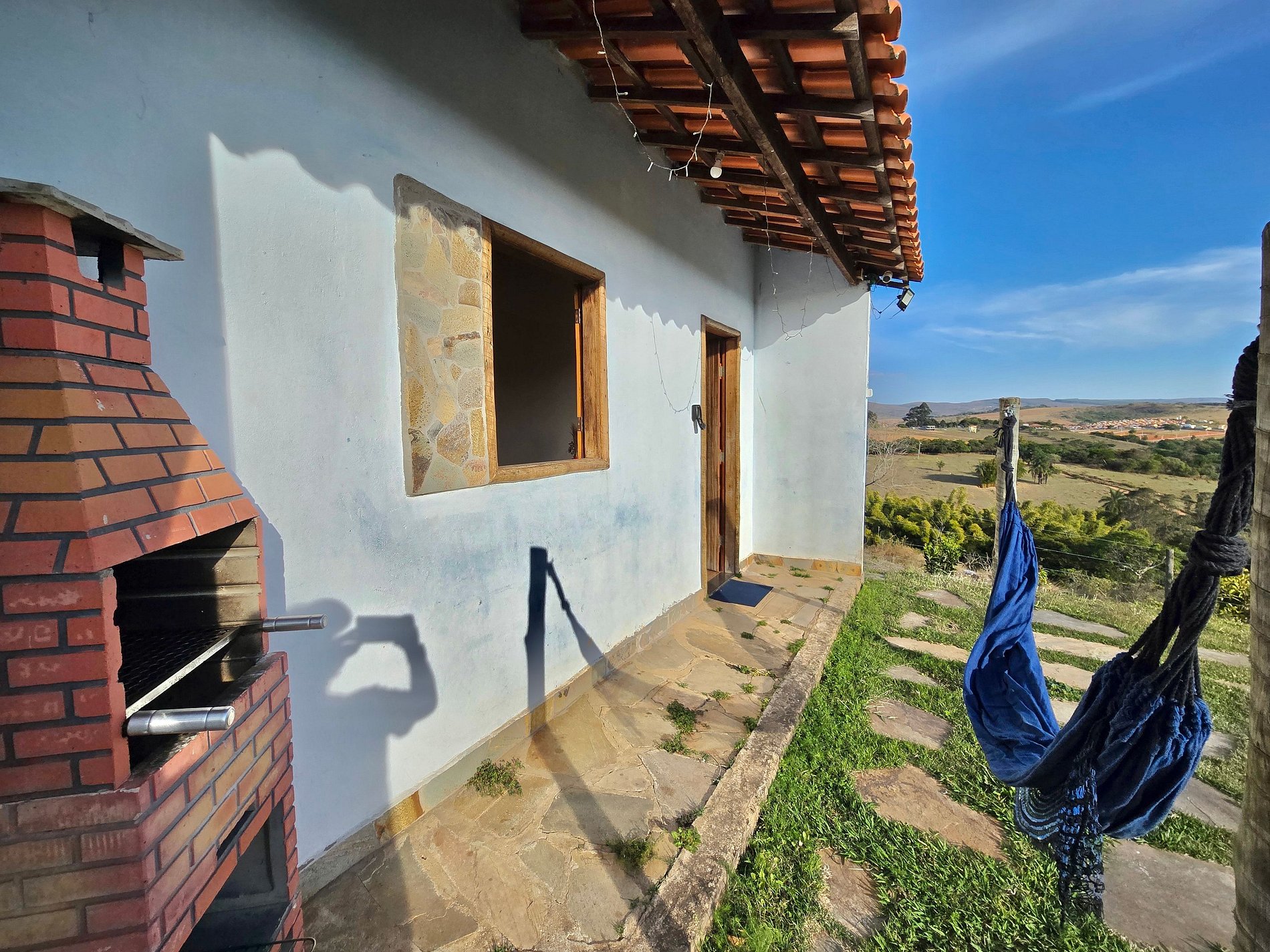 Chalé Azul - suíte com cozinha completa, varanda com rede e churrasqueira e linda vista