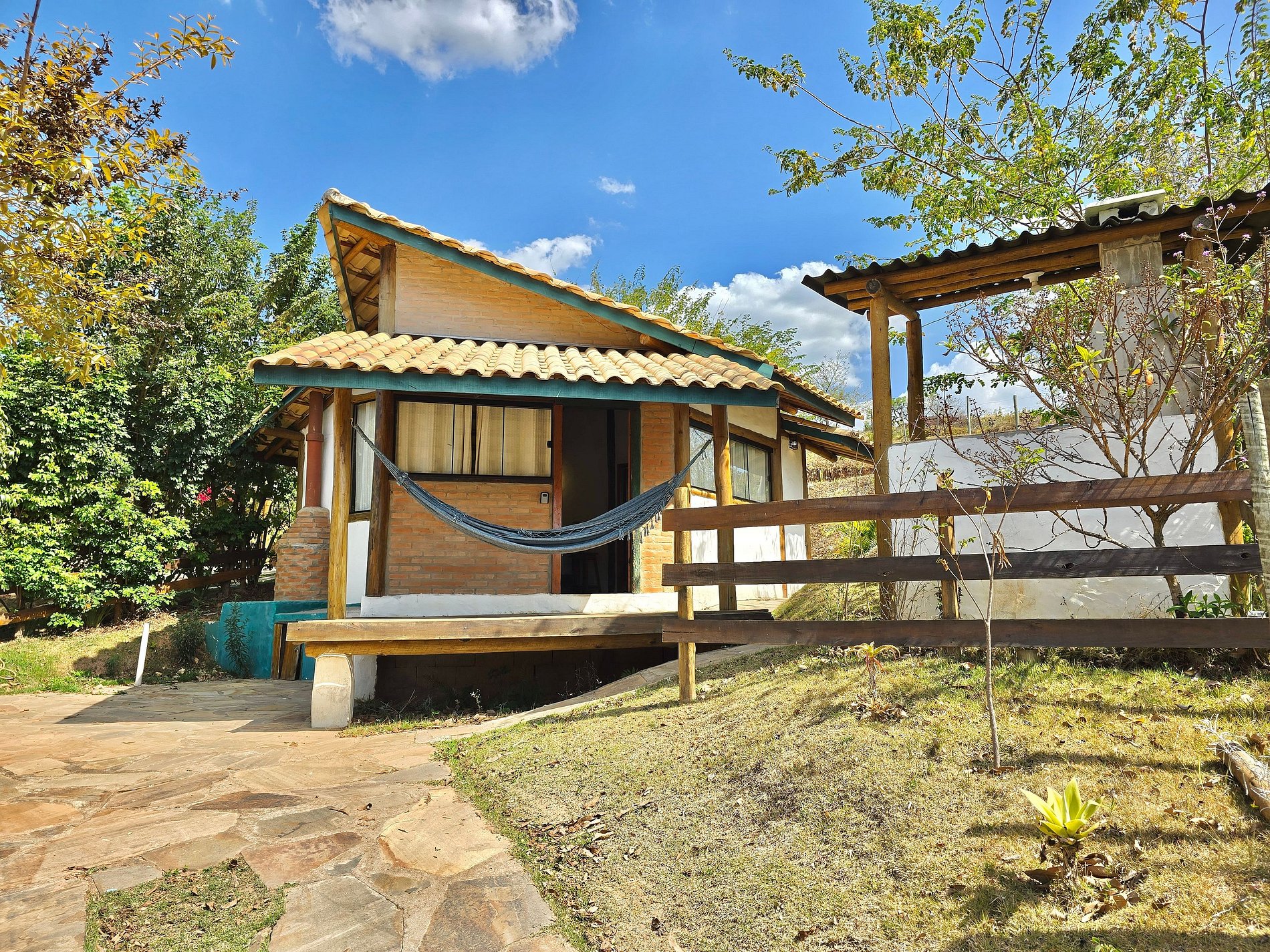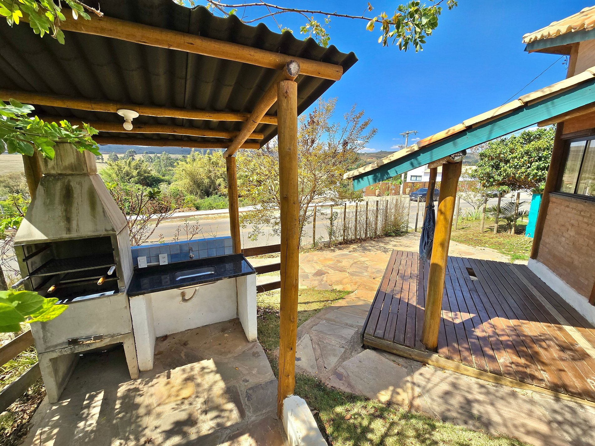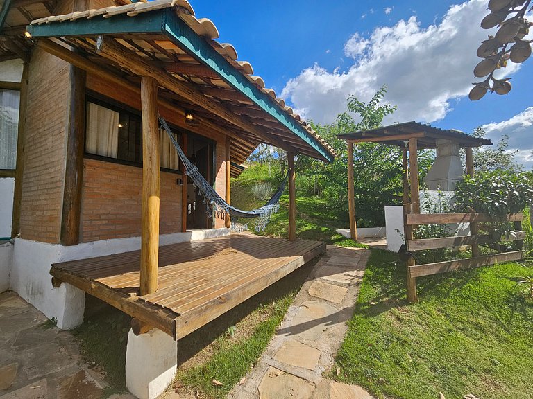 Nosso chalé possui banheiro, frigobar, varanda com rede, garagem, cozinha equipada, churrasqueira, WI-FI de alta velocidade e TV de tela plana com serviços de streaming.