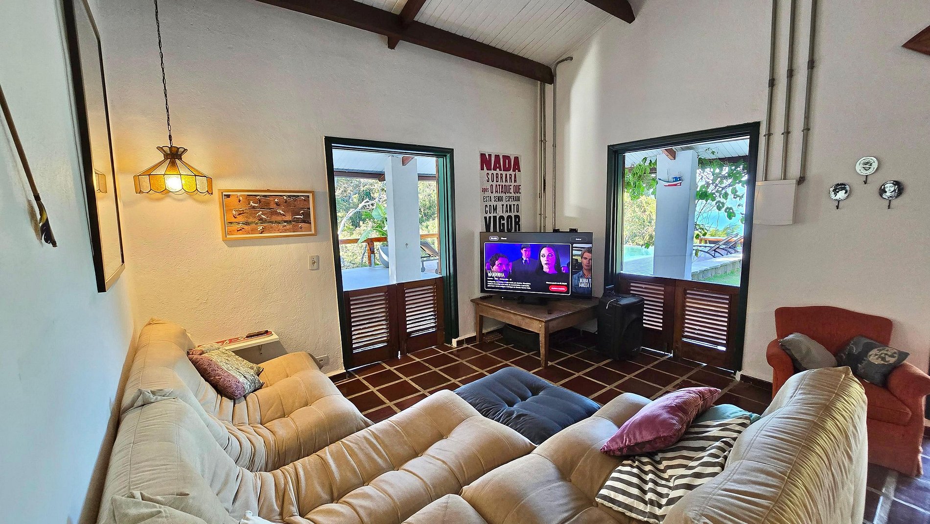 • A casa é pet friendly, porém apenas para cães dóceis, uma vez que temos outras casas no terreno. Por conta disso,