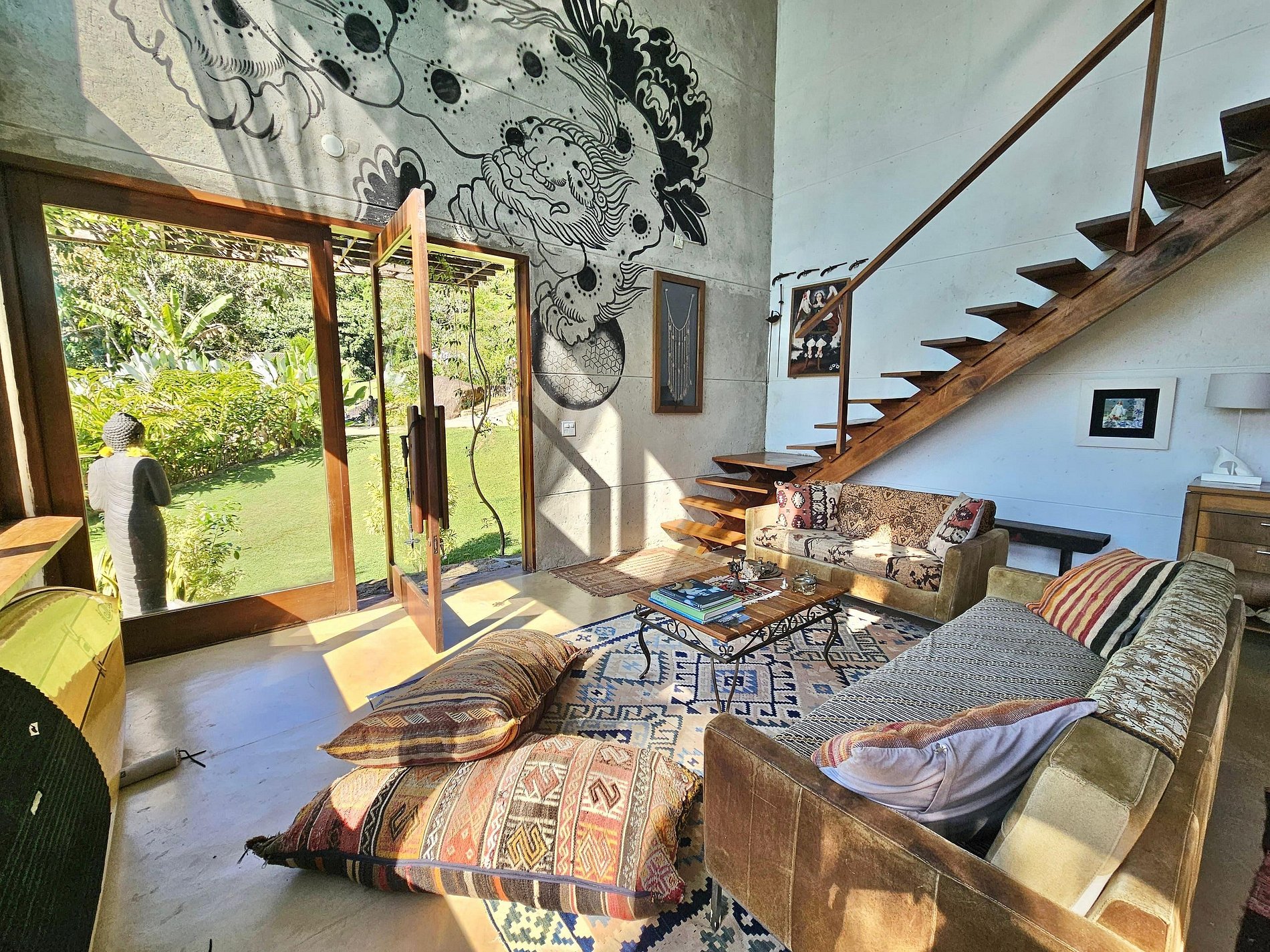 Localizada na Praia do Léo, a casa está cercada pela Mata Atlântica e próxima de diversas praias paradisíacas do litoral norte de São Paulo e sul do Rio, entre Ubatuba e Paraty.