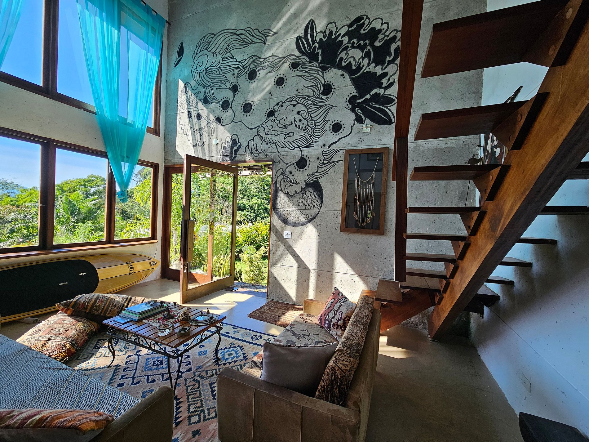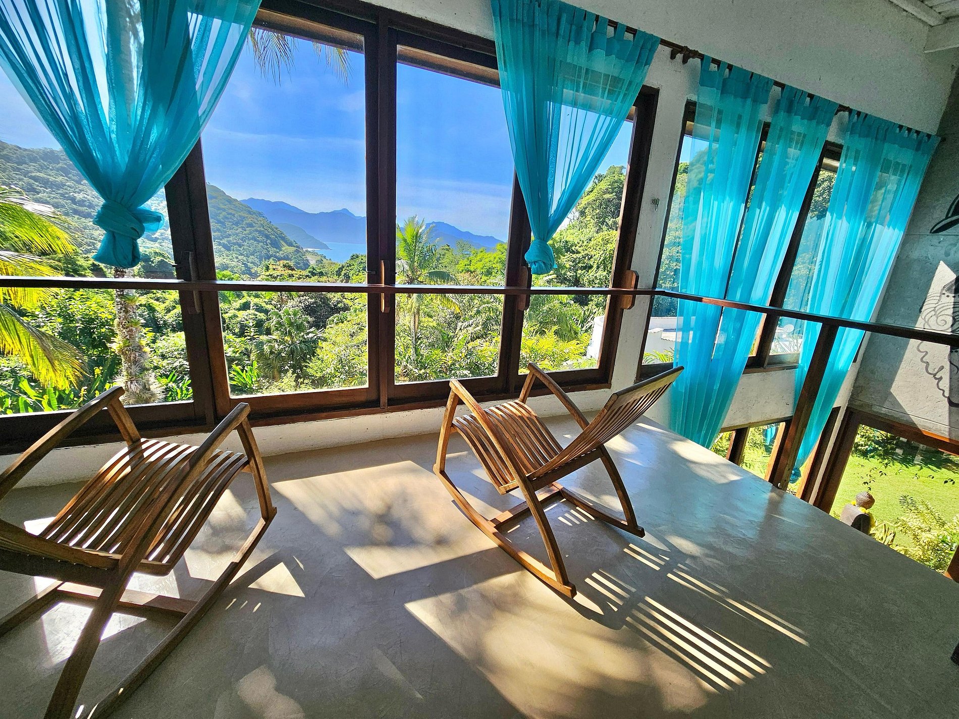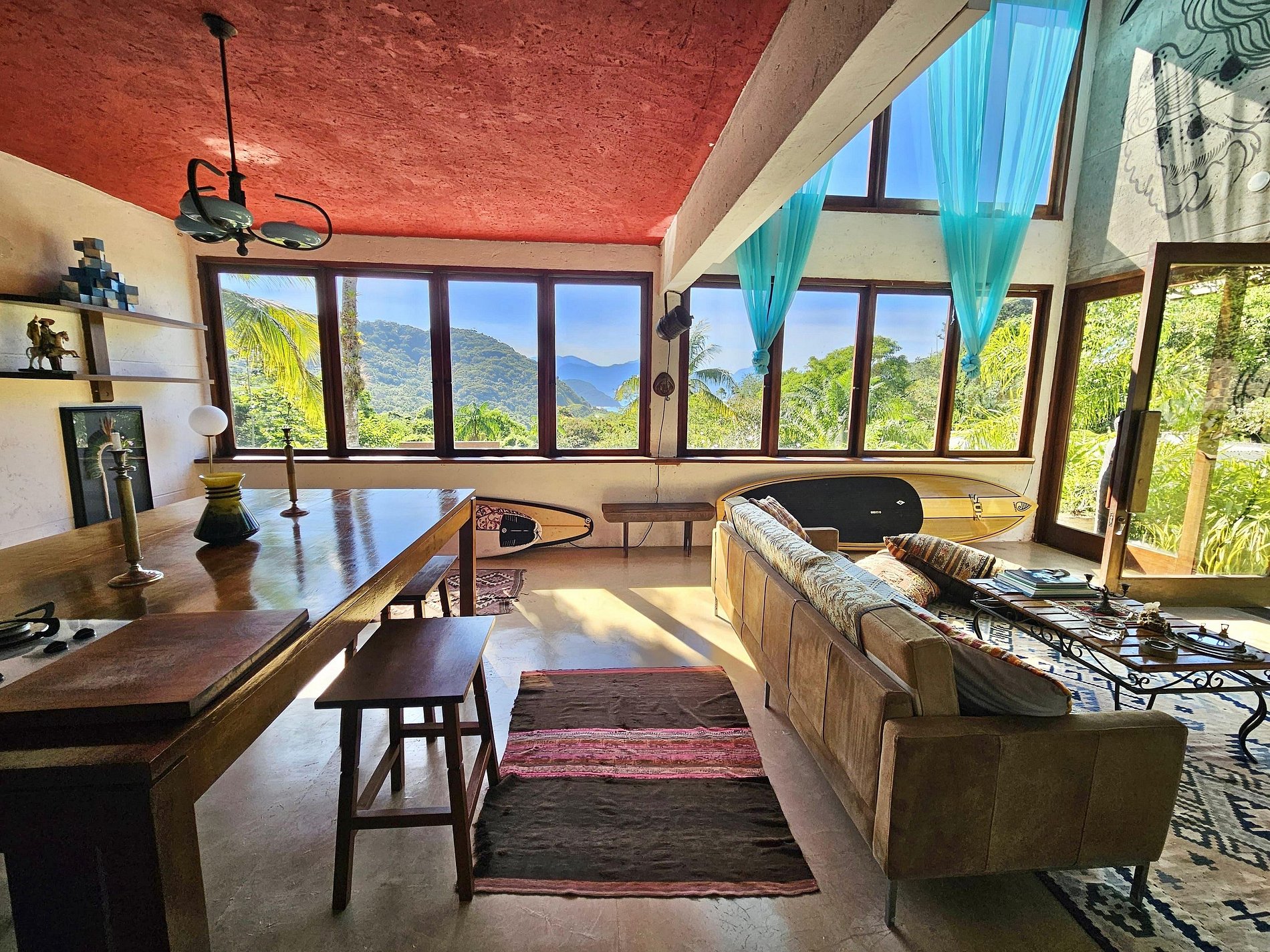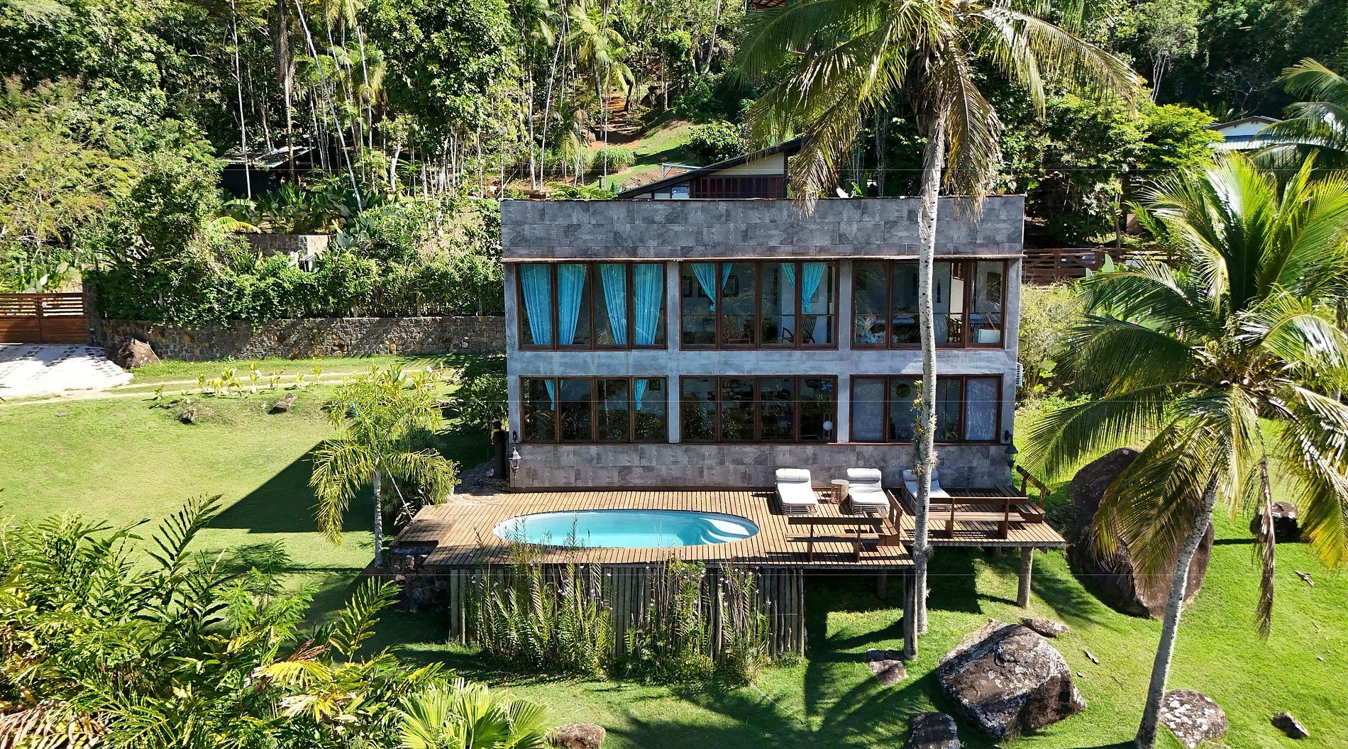 Localizada na Praia do Léo, a casa está cercada pela Mata Atlântica e próxima de diversas praias paradisíacas do litoral norte de São Paulo e sul do Rio, entre Ubatuba e Paraty.