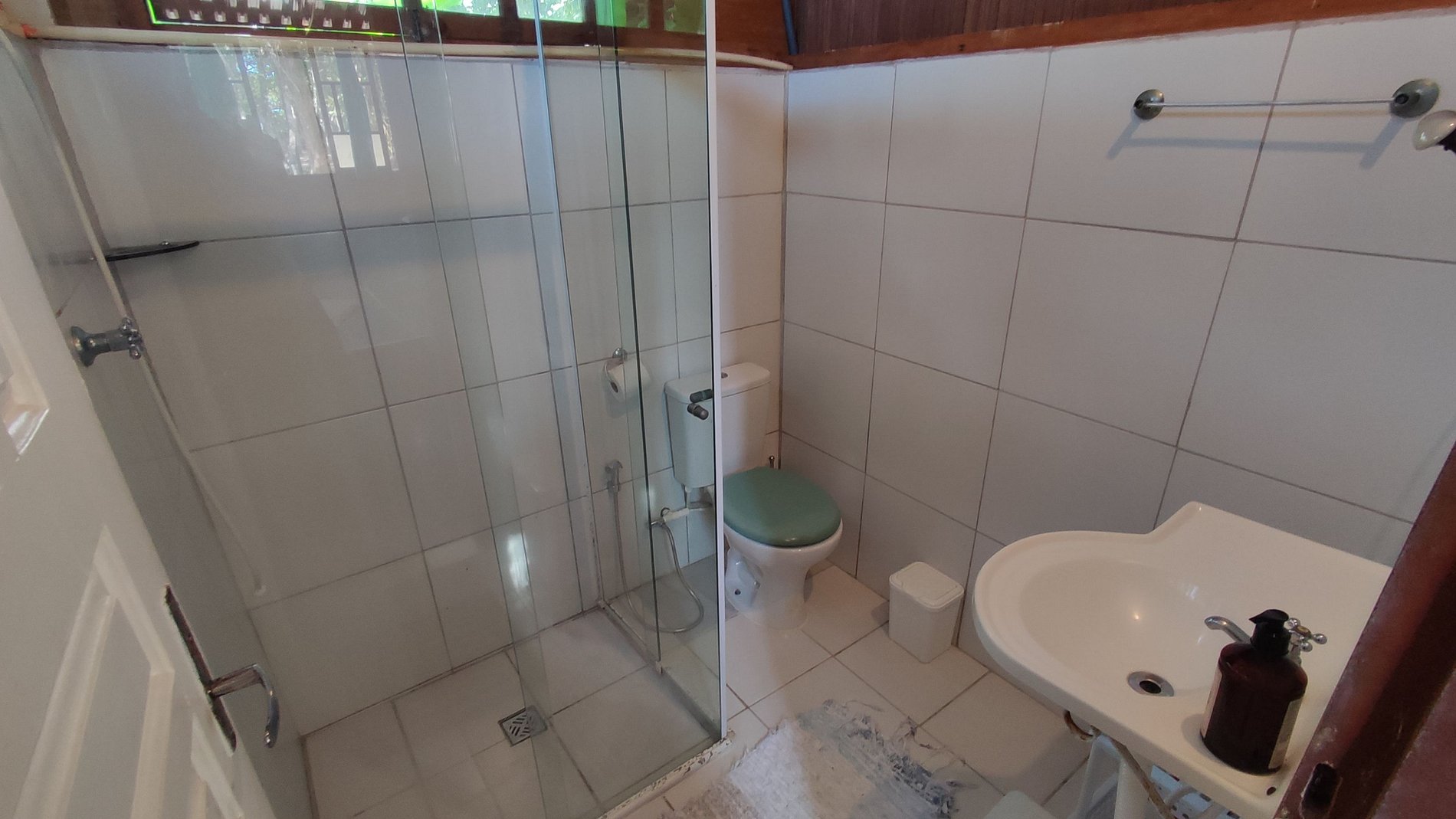 Banheiro com chuveiro quente elétrico e ducha higiênica.